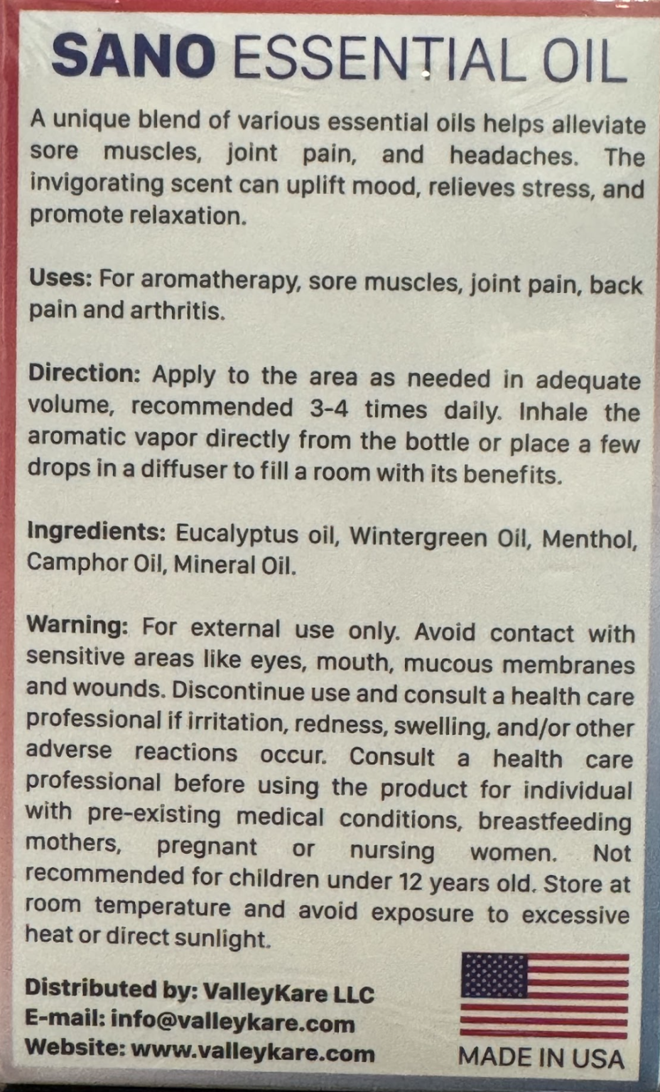 • Sano Essential Oil (Set of 6 x 5ml): Targeted relief for tension and minor aches.